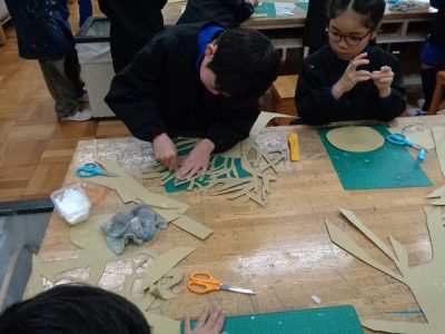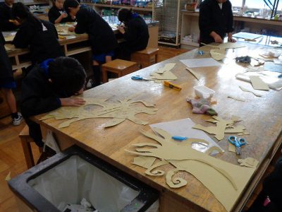 今日の3年生は、礼拝後、図工の作品作りからスタートしました。