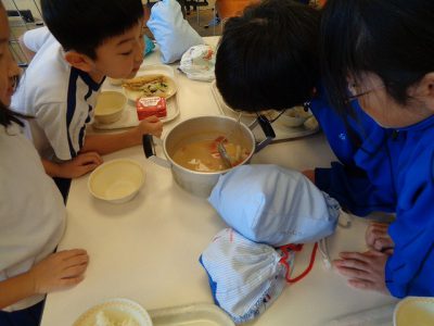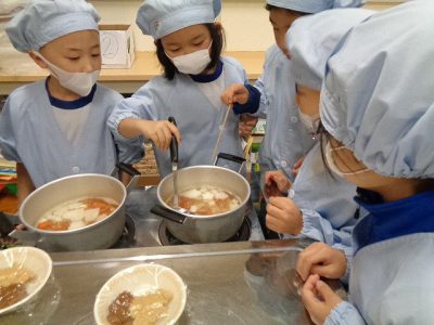 もちもちのおもち、ほんのりこくのある金時人参、そして、みんなで作ったからおいしい、と感想が聞かれました。