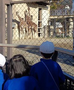 太陽の光がまぶしくて暖かい!動物園まで歩いて行ける文教キッズ、幸せですね。