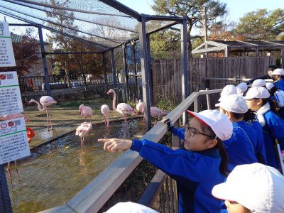 フラミンゴの前では、パネルに紹介された文面を、ポエムのヒントにしようと、メモをとる友達もいました。