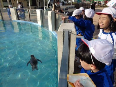 ペンギン前では、自分たちの生まれた年と、ペンギンたちとの生まれ年が同じだったようで、盛り上がっていました。ポエムに使える言葉がひらめいたかな?
