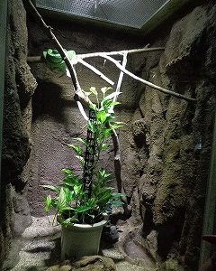 こちらは熱帯動物館の“ミドリニシキヘビ”。なんと脱皮中…。ベロ~ンと垂れ下がっている様子が伝わっていますか?この様子を詩に表してくれる友達がいてほしいな。着替え?変身?進化?どんな言葉を選んでくれるかな?