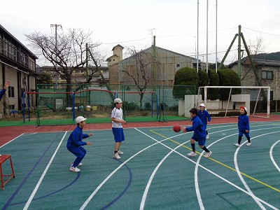 ドリブルしながら、パスを出したり、ゴールマンにシュートしたりして、ポートボールのルールが理解できてきました。