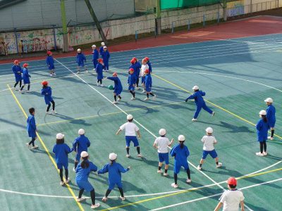 中間休みは「みんな遊び係」の提案・進行でドッジボールをしました。