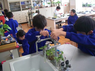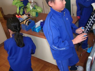 今日の理科は、テスターを使って、理科室にあるいろいろなものが電気を通すのか調べました。