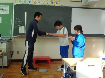 2人の学級代表が感謝状を受けました。