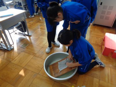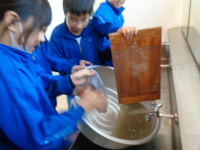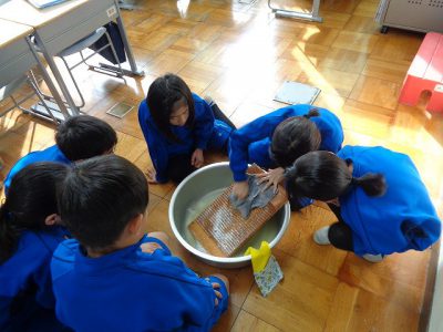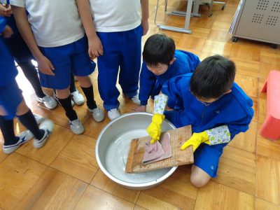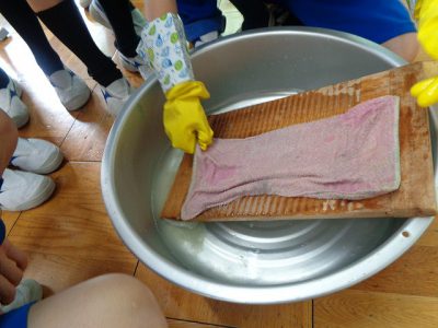 布と布をしっかりもみ洗いし、よごれを落としていきました。