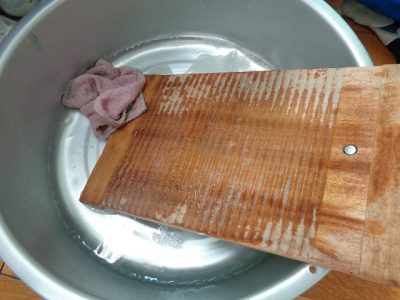 今日は、洗たく板を使って、ごしごし洗いました。