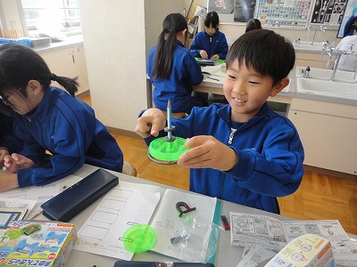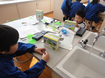 そして、一人一人が自由に磁石をさわりながら、発見したことをプリントに書き留めていきました。