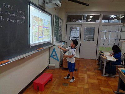 算数の学習では、地図をもとにして、かかる時間を計算したり、