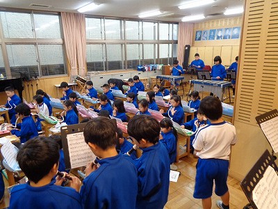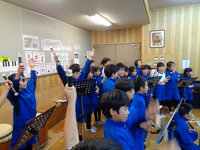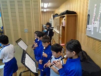 歌を歌ったり、リコーダー二重奏の練習をした後、合奏の練習をしました。