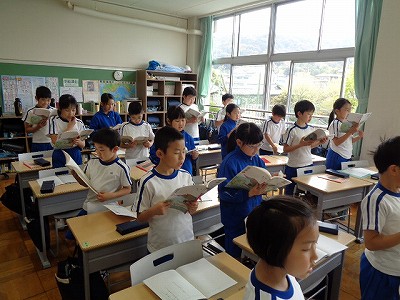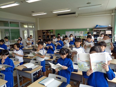 続いて、国語の時間にも、全員で「白いぼうし」の音読をはじめに行いました。