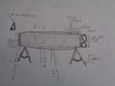 さて、音楽室の扉には、4年生の「琴」作画作品が掲示されています。上から、横から、斜めから見て書かれた作品、ロボット好きな子らしい作品、凜とした琴、リアルな作品…など、それぞれ異なりますが、がんばりと個性が伝わってきます。
