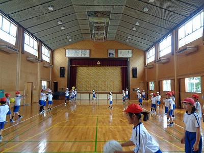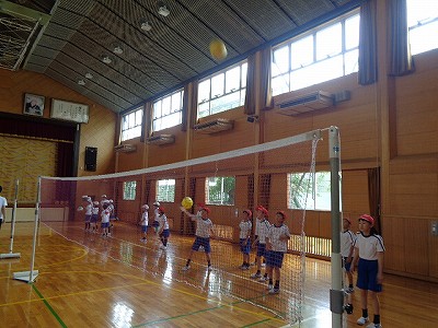 その後の体育授業内容は「ソフトバレーボール」です。始めたばかりで、技術的にはまだまだですが、ボールを高く打ち上げることも、かなり上手になってきました。