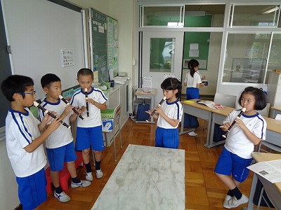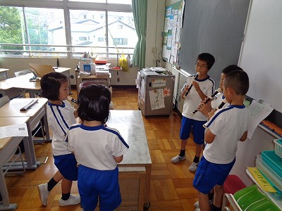 最近の休み時間の楽しみ方の一つに、新たに「リコーダー演奏」が加わりました。曲は「もののけ姫」の挿入歌です。音楽授業で習った二部合唱を2人が始めると、何人かが自然に寄ってきて、複数人数で美しいハーモニーを奏でます。