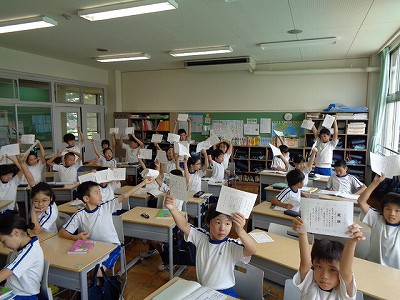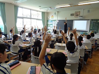 週明けの英語科授業では、まず、"Everyone! Raise your hands.... and stretch! (はい、ストレッチ!全員、片手をまっすぐ上げて!)」という先生の指示の元、挙手練習。「教室はまちがえるところだ」(蒔田晋司作)の絵本の通りだと頭では分かってはいるけれど、まだまだ、挙手するのにたくさんの勇気を要する子もいます。固くなった身体をしっかりほぐして、さあ、挙手へ!…つながることを祈ります。