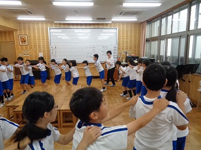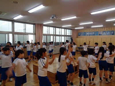 英語の授業でも、歌に合わせて~、となると、一気に盛り上がる子ども達です。