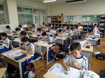 社会科学習で、災害の多い日本で暮らす私たちにとって、大切なこと、必要なことは?と学んだところです。過去の災害例や避難の状態などを話すと、子ども達も真剣なまなざしで聞き入り、被害を少しでも押さえるために日頃からやるべきことを確認しています。
