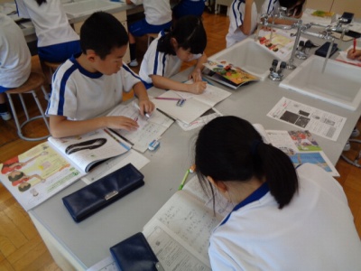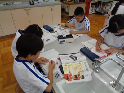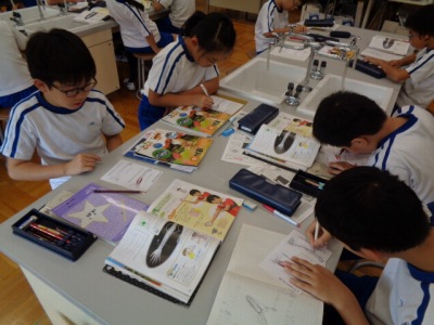理科学習は、わたし達「ヒトの体」の学習です。ちょうど、腕の筋肉について学習し、先生から「腕を回す時は、この筋肉を使っている」と教えていただきました。「この筋肉か!」と自分の腕を触り、実感しながら書いていました。