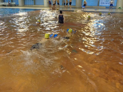 水泳学習も本日を含め、あと2回。言葉通り、1分1秒を大切に、練習に励みます。得意なグループは列をなして、クロール→平泳ぎと、どんどん泳いでいきます。Aグループもクロールの手掻き練習をしました。