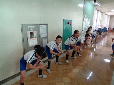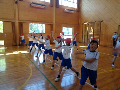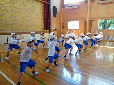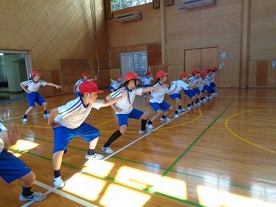 「手はピンと!」「腰は低く!」「胸張って!!」と先生の声に応えながら、3年生を前にして、いつも以上に張り切って練習しました。