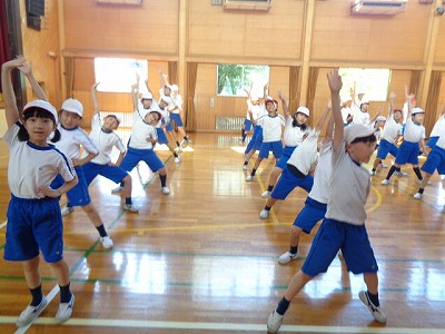 運動会に向けて、いよいよ団体演技「文教ソーラン2019」の練習が、3年生と合同で始まりました。