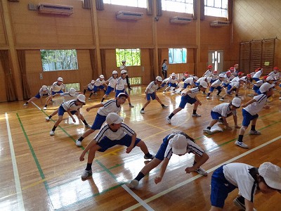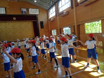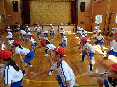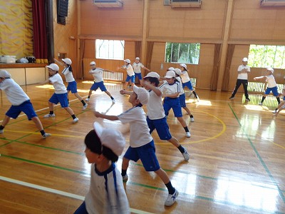 2校時分、全体練習をがんばった後、合同体育での「ソーラン練習」です。