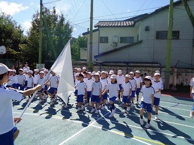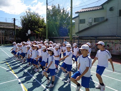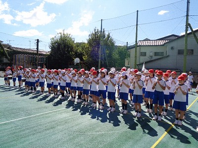 今日は、初めての全体練習で戸惑いもありましたが、6年生応援団長のリードのもと、お腹から声を出してエール交換しました。次回の練習、そして本番では、一層、引き締まった移動や行進をしてくれることを期待します。