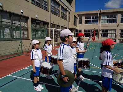 4年生からはクラブ活動に参加でき、音楽クラブの4年生メンバーも鼓笛隊の一員です。高学年に混じって楽器を持って立つ姿は、とても凜々しいものでした。