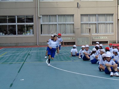 全校練習も、中学年合同体育も、どちらも予定通り、グランドで行うことができましたが、この暑さは予想外です。日があたると、ちりちりと焼かれているような気がしました。