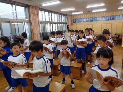 甚大な被害について、子ども達と分かち合い、今、こうやって連休明けに、元気に登校できることがどれだけ幸せなことか等、確認しました。同時に、ボランティアも出来ない私たちにできることは、被害に合われた方々に心を合わせることだと確認し、日々の「同称十念」に思いや心を込めて唱えることを実行しました。