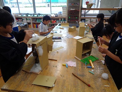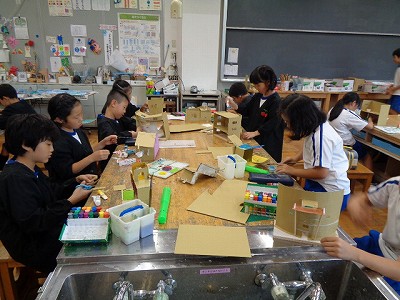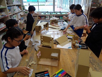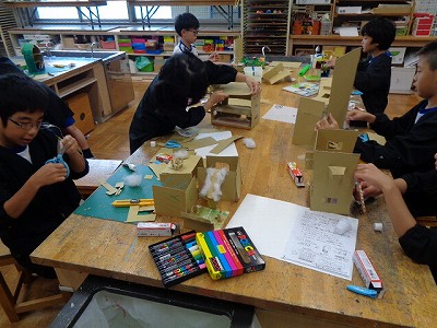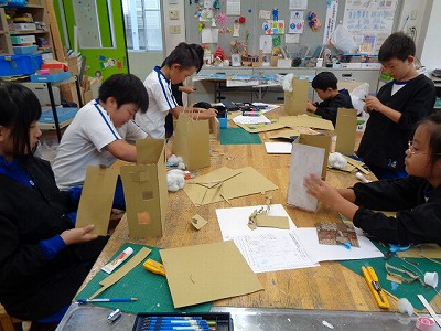 金曜日は、子ども達の大好きな図工の授業があります。今日も引き続き、それぞれの思いを込めて「ビーンズハウス」製作に取り組みました。
