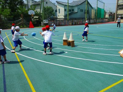 体育では、ボール投げや的をねらう力を参考にした『ゲームチーム』が誕生しました。