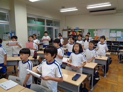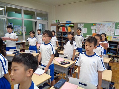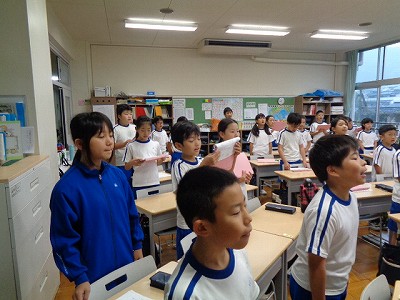 短くない文章ですが、3年生でも練習した分、すぐに思い出したようで、暗唱している子ども達が多いのには感心しました。大好きな「走れメロス」を、お腹から声を出し、リズムよく音読し、「雨ニモ負ケズ」元気よく、一日のスタートを切りました。