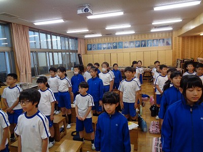 木枯らし1号も吹いた連休のあと、快晴ながらも朝はすっかり寒く感じる天候となりました。いつもは元気な4年生ですが、中には体調を崩している子達もいて少し心配です。1日も早い回復を祈るばかりです。