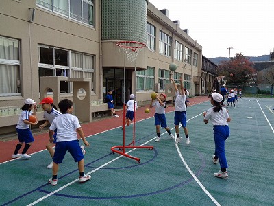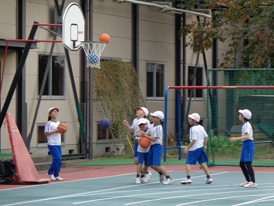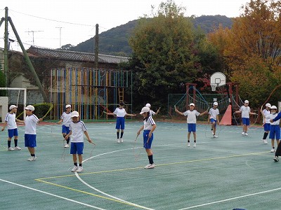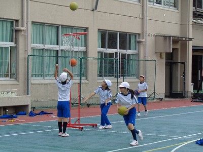 体育授業は、引き続き、縄跳びとポートボール練習です。