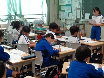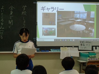 今日の日直さんが立てた目標は「話を一回で聞く(=聞き取る)」でした。今日は先週まで国語の時間にやってきた「アップとルーズで伝える」(説明文)学習の最終目標:学校の紹介したい場所を「アップとルーズの視点で説明する」発表会です。さて、目標を達成できるでしょうか…?