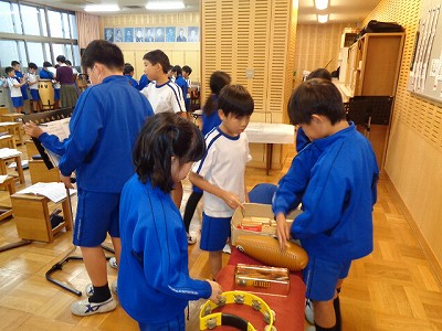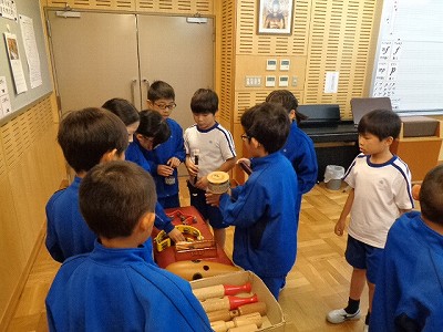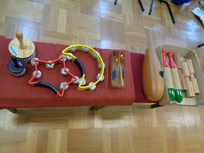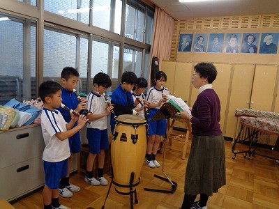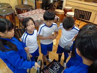音楽授業では「おどれサンバ」の曲を、グループで演奏する相談をしました。