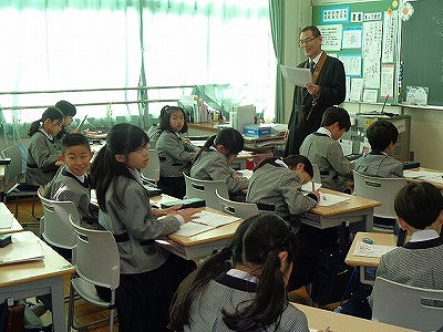 朝の礼拝後、1時間目は長谷川先生による「月かげ宗教」の授業でした。長谷川先生の凜とされた佇まいやお話しぶりに、見ているこちらの背筋も伸びます。子ども達も礼拝に続き、静かに落ち着いて授業に臨みました。