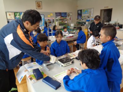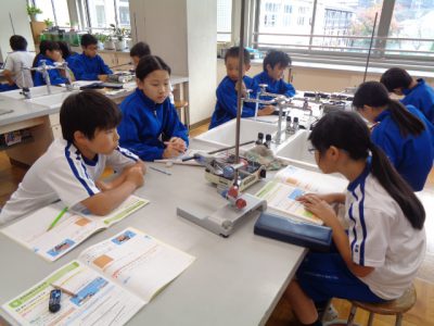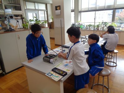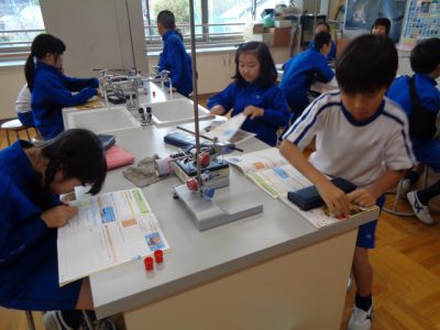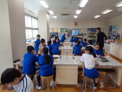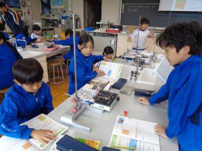 理科授業は「ものの温まり方」の実験です。実験というだけで、いつもワクワクしているのが伝わってきます。加熱実験で、熱した鉄の棒にロウソクを近づけると、炎がつくことに、驚きと発見がありました。実験結果と知識が結びつきますように。