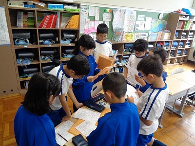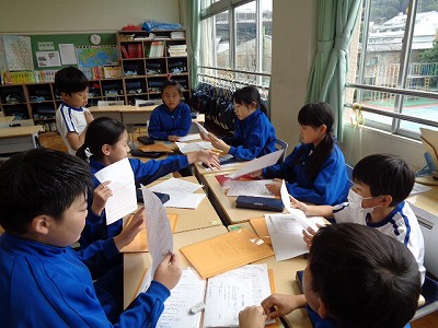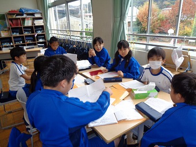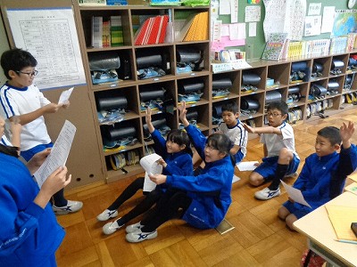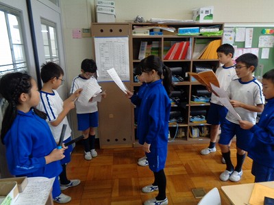 今週木曜日に迫った、参観の道徳授業と月かげ集会に向けて、グループ毎に相談と練習を行いました。