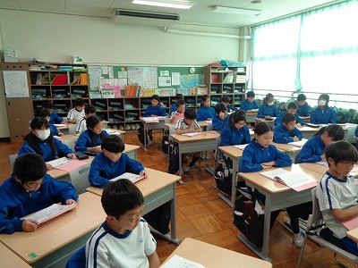 はじめは不慣れだった4年生も、すっかり手際よく片付けています。中には「また、こんなところに戻してある…。」と、少々怒りを含んだつぶやきも。