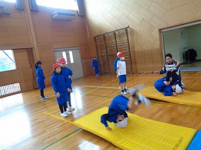 先生の指示を守って、基本の形、姿勢を大切にし、そして、少しの勇気を持ってチャレンジ!「全然出来なかったけれど、後転できるようになった!」と喜ぶ姿もありました。