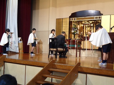 今日は礼拝の日。4年生礼拝係デビューの日です。