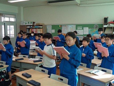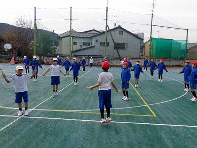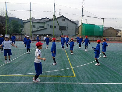 金曜日の朝は「5分間走」をしますが、今日は縄跳び練習も行いました。