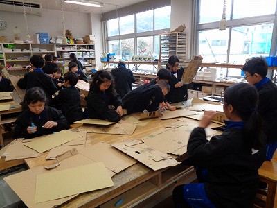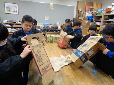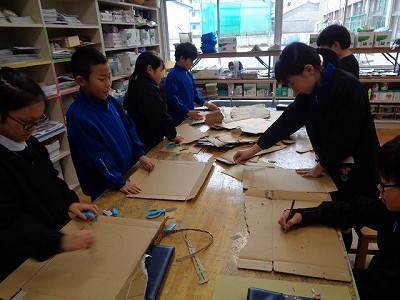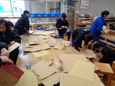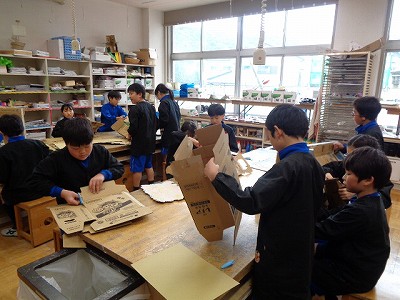 そして、大好きな図工学習です。今日からは新しい作品づくりに取りかかります。貝がらを砕いた粉などを用いて、自分の化石作りです。