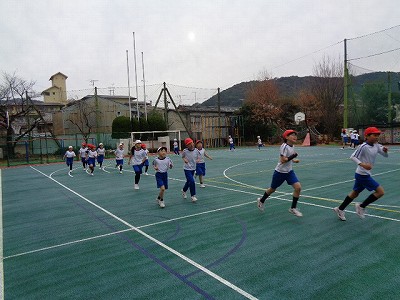 曇天でしたが、朝からランニングと大縄とびで始まりました。