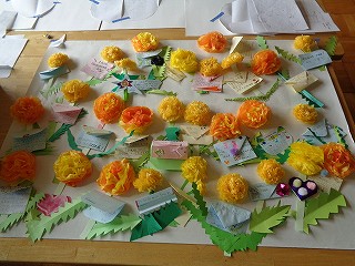 そのイメージは、先日の学級会で話し合って決めた「野原に咲くタンポポ」です。「タンポポのように周りを明るく」「タンポポや雑草のように踏まれてもめげないで」「綿毛がとんでいくように、大空に羽ばたいて」色々な意味が込められています。これから、仕上げに入っていきます。