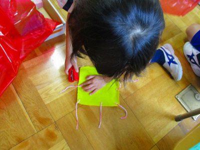 色とりどりの「らっかさん」になるよう、材料も色々。