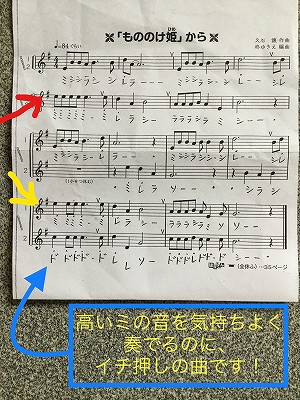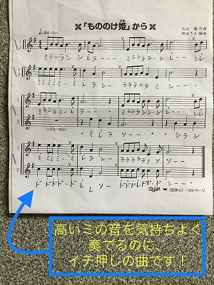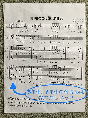 皆さんのお宅に、音楽の教科書と「もののけ姫」の楽譜(がくふ)が届きましたか?